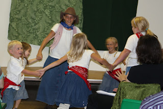 This summer the kids worked with some of their friends to put together an adaptation of Shakespeare's, "The Taming of the Shrew." One of the things they did to adapt the play besides cutting it shorter was to make it a western. Here is Jared at Peter (originally known as Petruchio) with his servant Greg, riding into town to look for a rich wife.